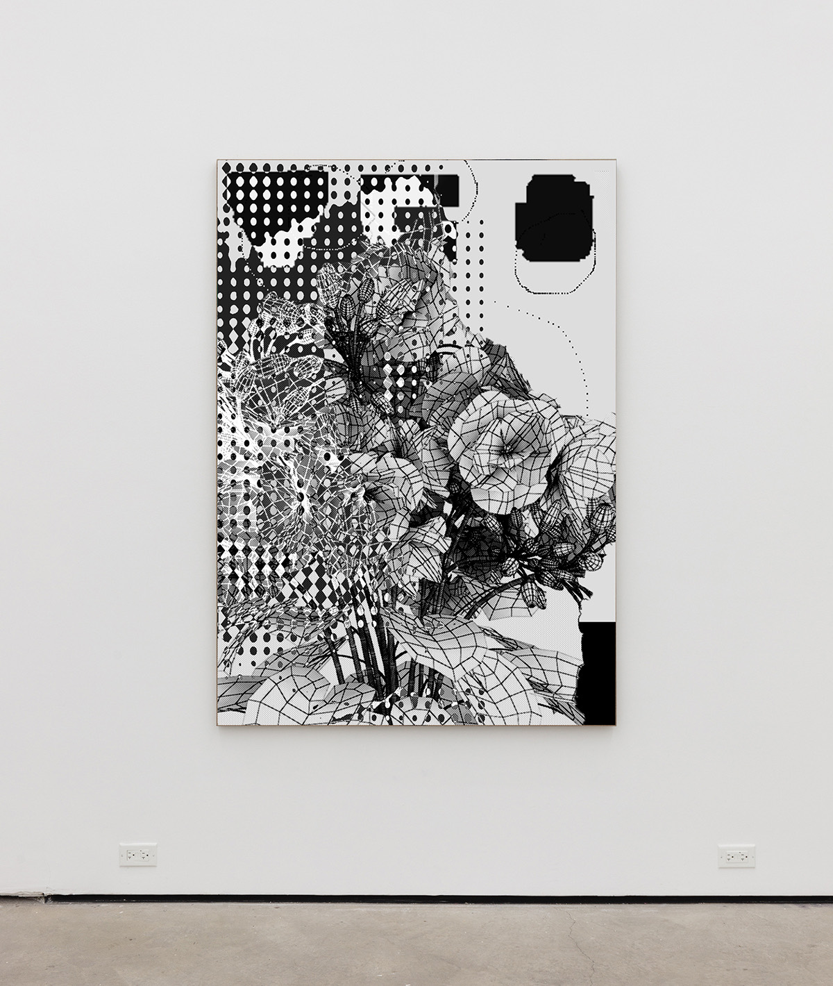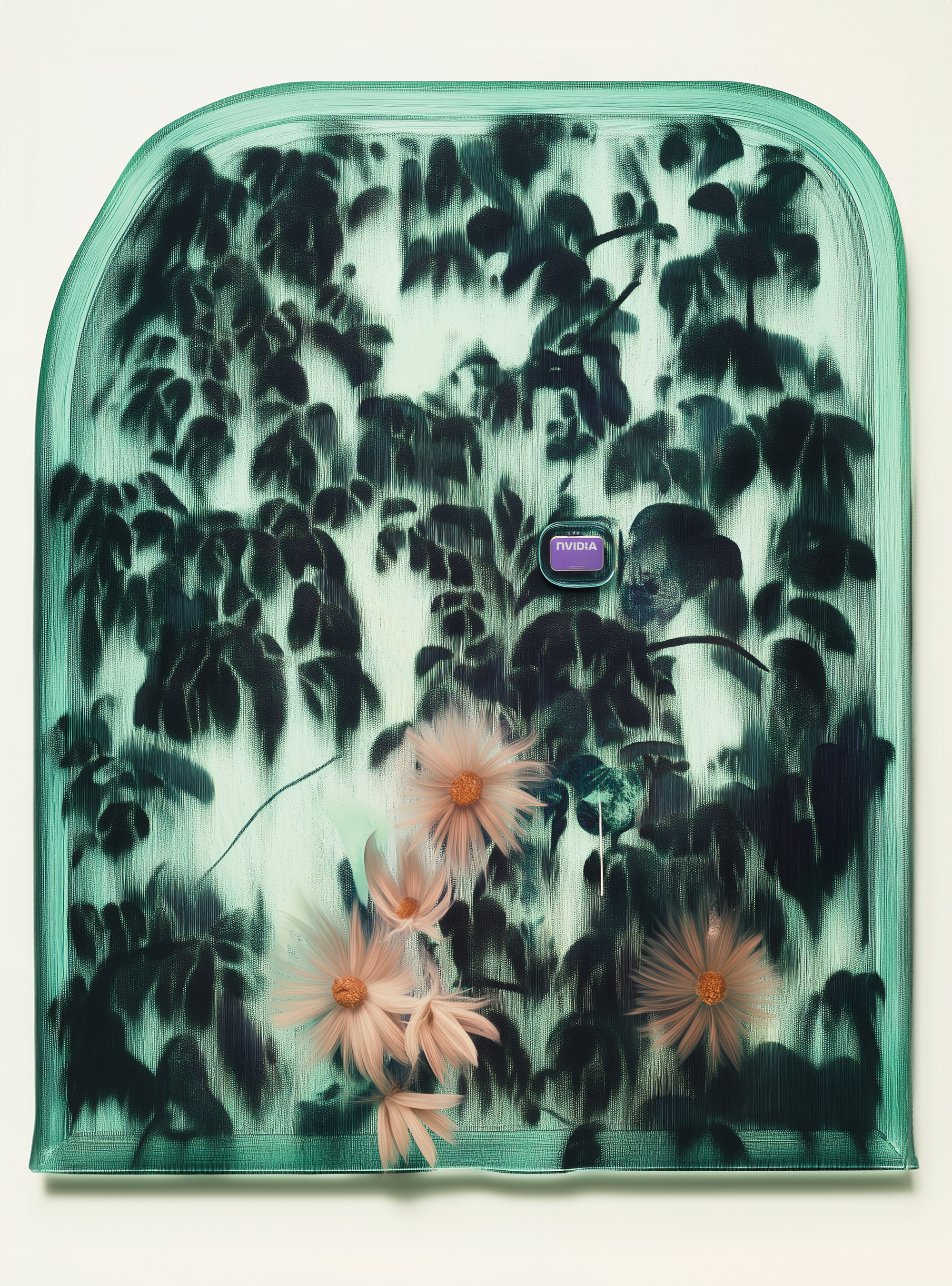 Cette série propose une vision spéculative d’un végétal à venir, transformé par son contact prolongé avec les systèmes techniques. À mesure qu’il cohabite avec la machine, l’organique y mute, s’adapte et se créolise, comme s’il développait ses propres stratégies de survie au sein d’un nouvel environnement techno-biologique. Réalisée à partir d’un processus mêlant photographie et peinture augmentée, l’œuvre mobilise un traceur hacké permettant au pigment d’être déposé comme une véritable matière picturale. Entre image construite, surface peinte et fiction botanique, elle esquisse un devenir hybride du vivant, où la floraison elle-même semble désormais commandée par une forme de moteur.