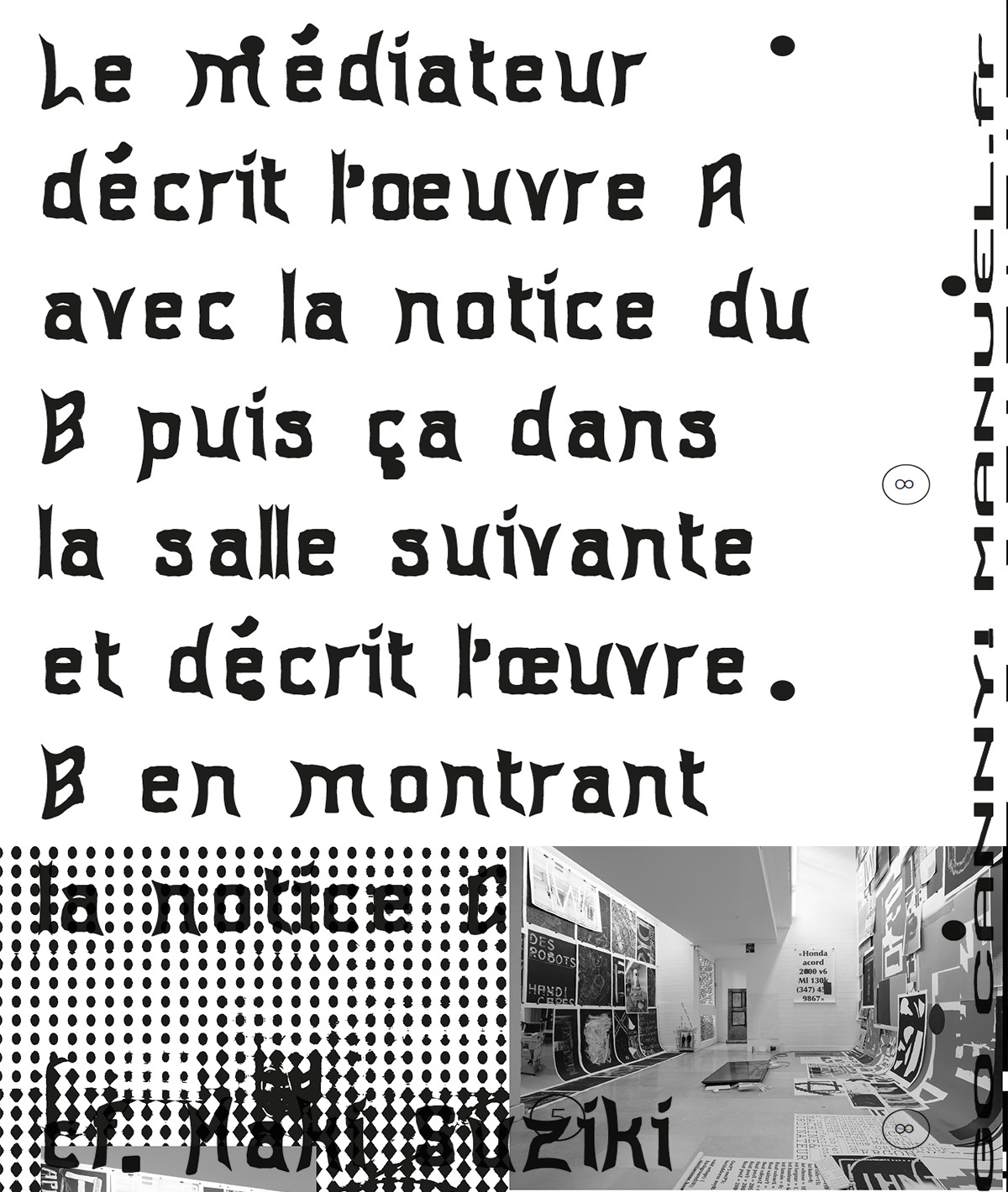 Dans le cadre de l’exposition GO CANNY! Poétique du sabotage à la Villa Arson, j’ai également été en charge de la direction artistique de cette exposition. Ma proposition et démarche artistique a été de pleinement saboter la communication visuelle. Ainsi, l’identité graphique et le catalogue ont été sabotés, rendant très complexe l’identification et la lisibilité de l’exposition.