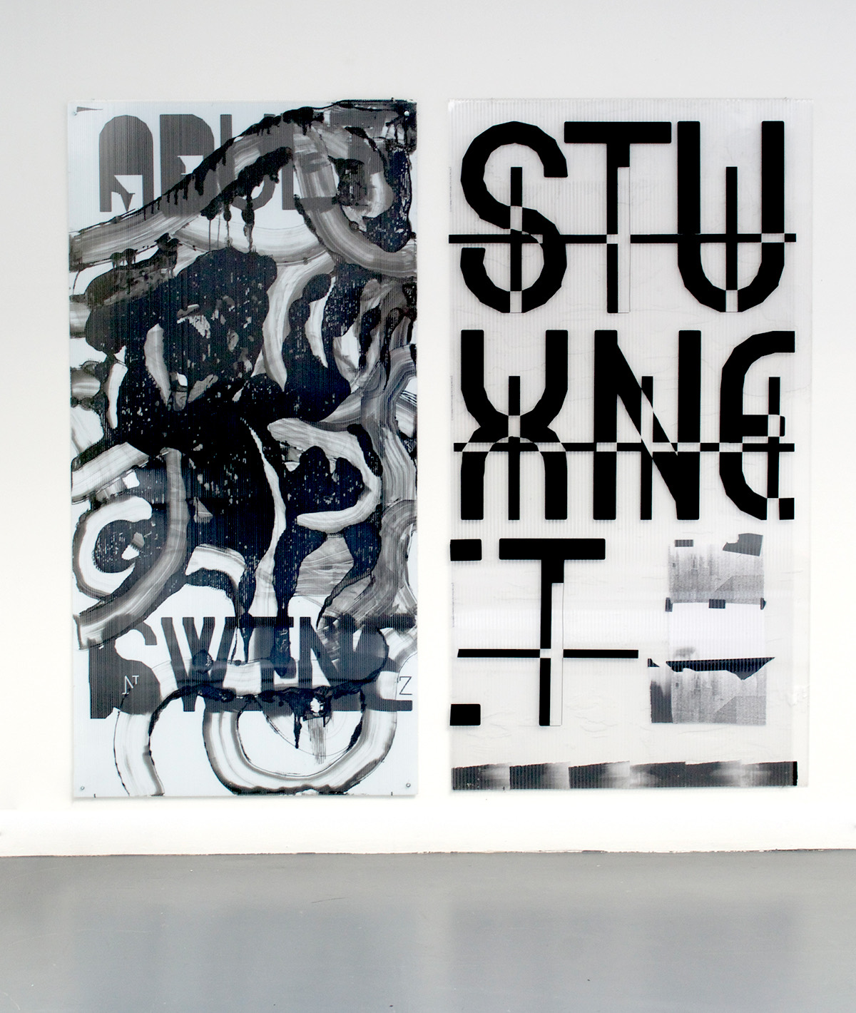 Cette série présente des tableaux arborant les noms de spyware et malware plus ou moins puissant type Stuxnet, Adulte Swine, Cookie bag, etc. au nom toujours trompeur, plus ou moins doux ou violent. La particularité de ces tableaux est qu’ils sont composés comme des captchas et utilisent des typographies brouillant l’analyse et la lisibilité par la machine. Ainsi, la machine ne perçoit jamais cela comme un message et ne peut non plus analyser cela comme une oeuvre d’art via des scanneurs AI type Google art projet. Ces images jouent donc le rôle de Trojan/malware en infiltrant l’espace internet de manière anonyme et virale.