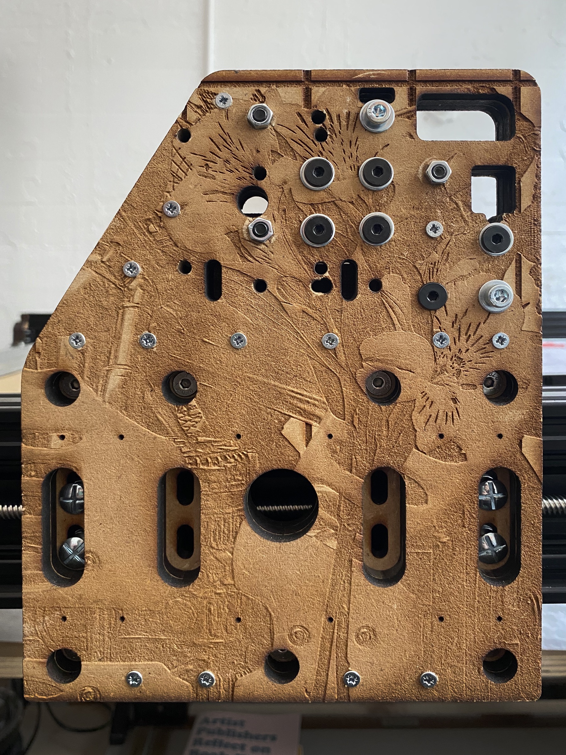 Conçue comme une CNC archaïque, visible et volontairement fragile, La machine tendre fait de sa propre vulnérabilité une esthétique de production. Alimentée par les flux continus de l’actualité technologique, elle remplit deux fonctions, à travers les séries Ghost Brands et Mecafantasma. Avec Ghost Brands, elle dessine des identités spéculatives pour des marques à venir, nées de la rencontre entre innovation, économie de l’attention et intimité humaine. Avec Mecafantasma, elle produit des silhouettes machinico-sensuelles, comme si la machine, en observant nos récits techniques et affectifs, tentait d’approcher les formes instables du désir. Entre veille, fiction et dessin automatisé, l’œuvre met en scène une technique qui ne cherche pas la perfection, mais une forme troublante de proximité avec l’humain.